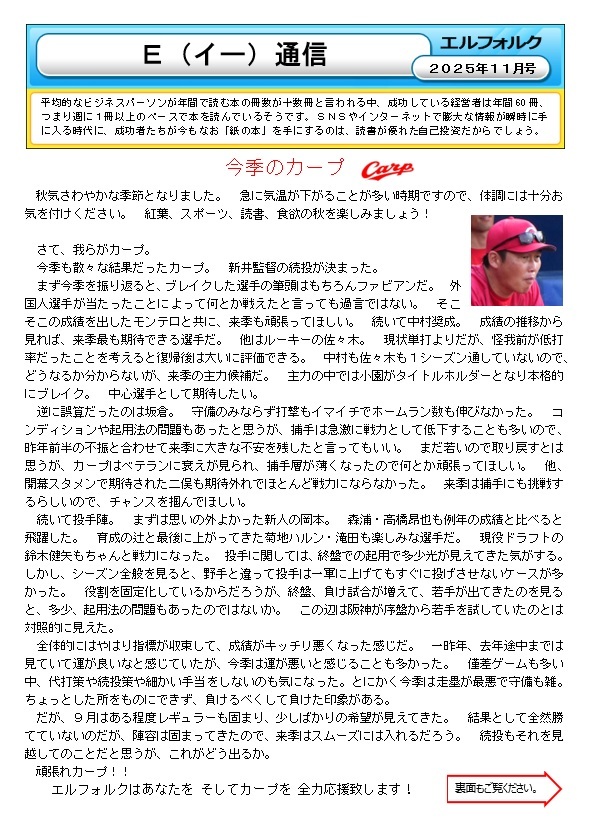 ■2025.10.21 エルフォルク通信2025年11月号更新しました。
